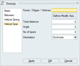 Note: Helical Gear is supported for CAD Parasolid models imported with Save geometry in database option.