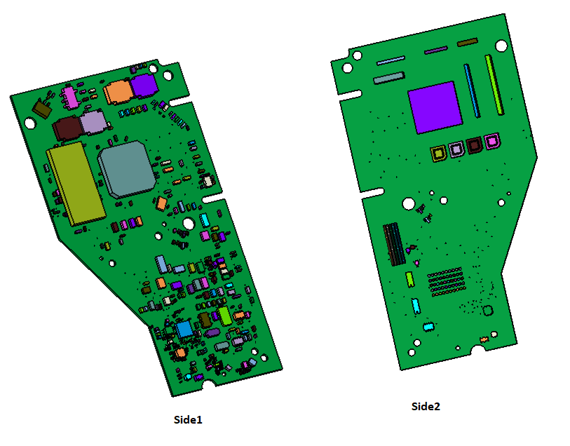 Bodies grouped into Side1 and Side2 sub-models for the given PCB:
