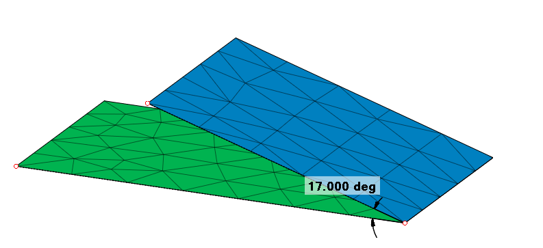 Defines the angle threshold used to determine which cracks or free edges should be stitched. This setting is especially useful in sheet body sewing operations, where it is important to avoid stitching at sharp corners that could result in invalid geometry, as illustrated below.