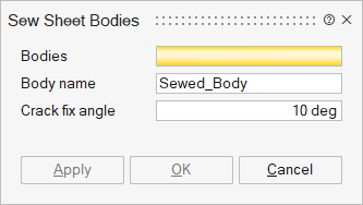It sews the sheet bodies together by gluing them at the edges that were found to be close enough to each other. The sewed bodies are merged into a single body. Sew is supported for models imported both with and without the "Save geometry in database" option.
