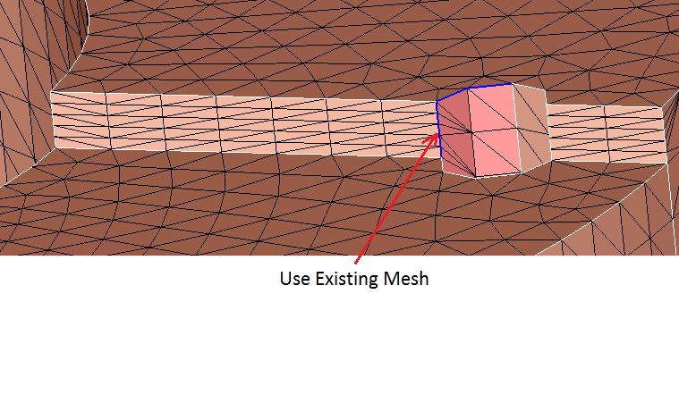 Select a face and enable the offset selected edges on faces option and selected some of the edges on the face. Select the move along guide edges and select the edge shown in the picture. Select the use existing mesh option with one layer of Tri element.