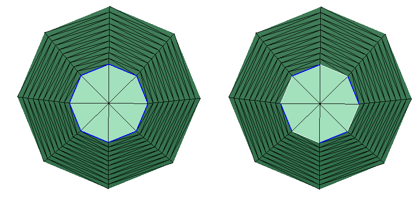 Single edge is broken in to several edges for angle 35°.