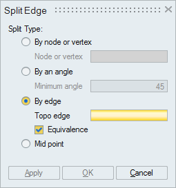 This option is used to split two intersecting edges. This is mainly used for gasket bodies. Edges will be splitted at the intersecting point of the two edges. Equivalence option is enabled by default. This is used to equivalence one node to another.