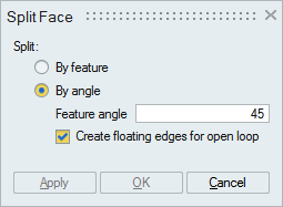 This is used to break faces in the selected bodies or faces using the specified feature angle. Elements will be grouped based on that angle and a face for the grouped elements will be created.