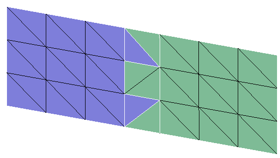 The gap shown below is manually filled by creating the 2D elements using Mesh > Modify > Create tool.