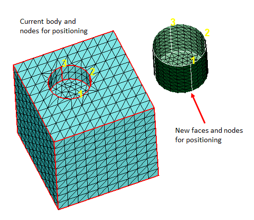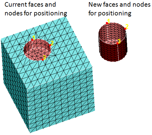 If the new faces need to be positioned before replace, then select three nodes from the new (movable) and current (fixed) mesh.