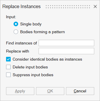In the case of CAD body input, turn on this toggle to find the identical bodies and replace them as instances.