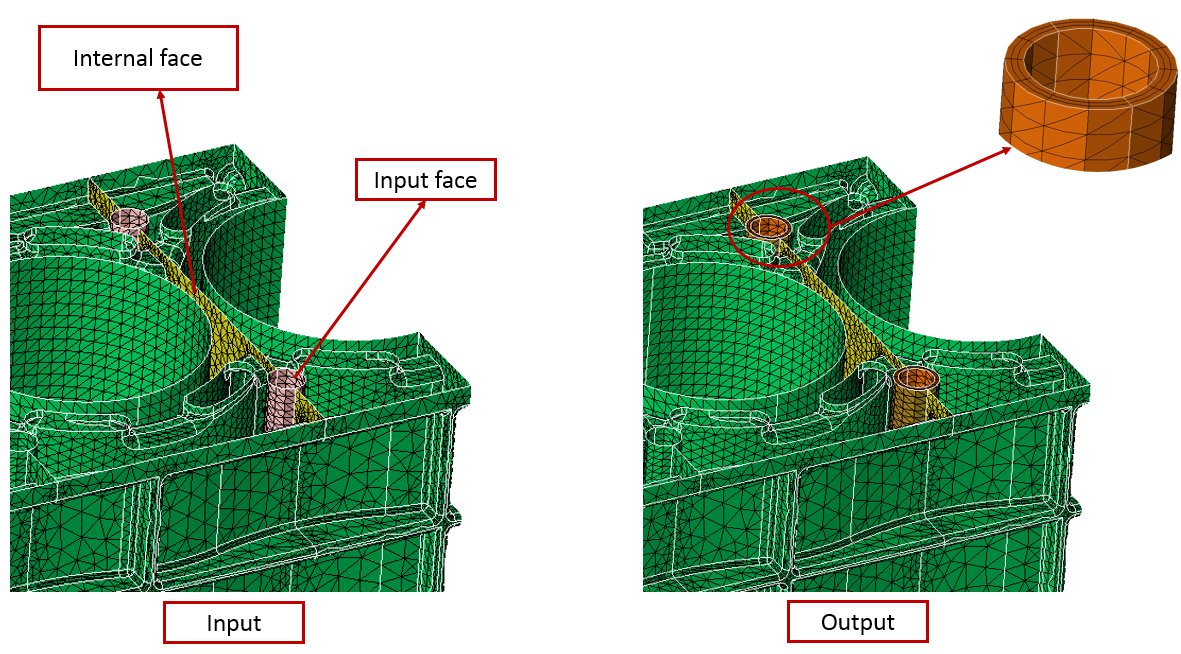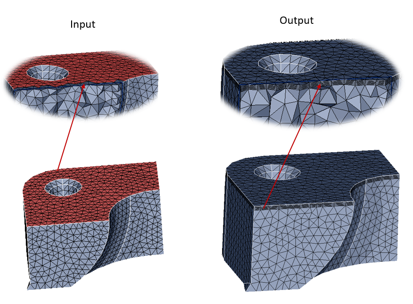 - If input faces contains only tri elements and create body for each layer toggle is OFF, then the volume mesh body and the shell body will have shared faces.