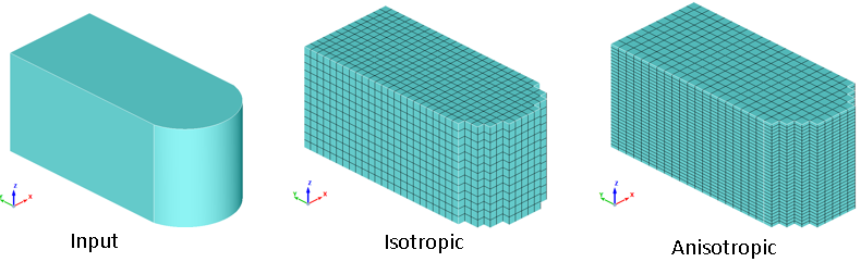 In cartesian mesh, all elements are bricks with equal/unequal size (isotropic/anisotropic), and edges are parallel to the XYZ cartesian axes.