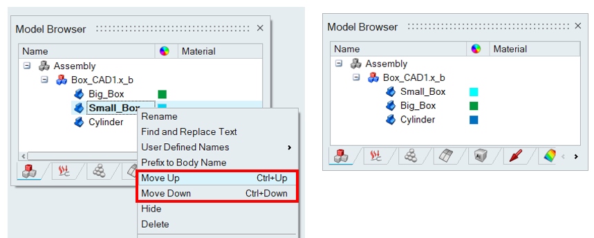 If the order in the model browser is updated such that the Small_Box is above the Big_Box, then the