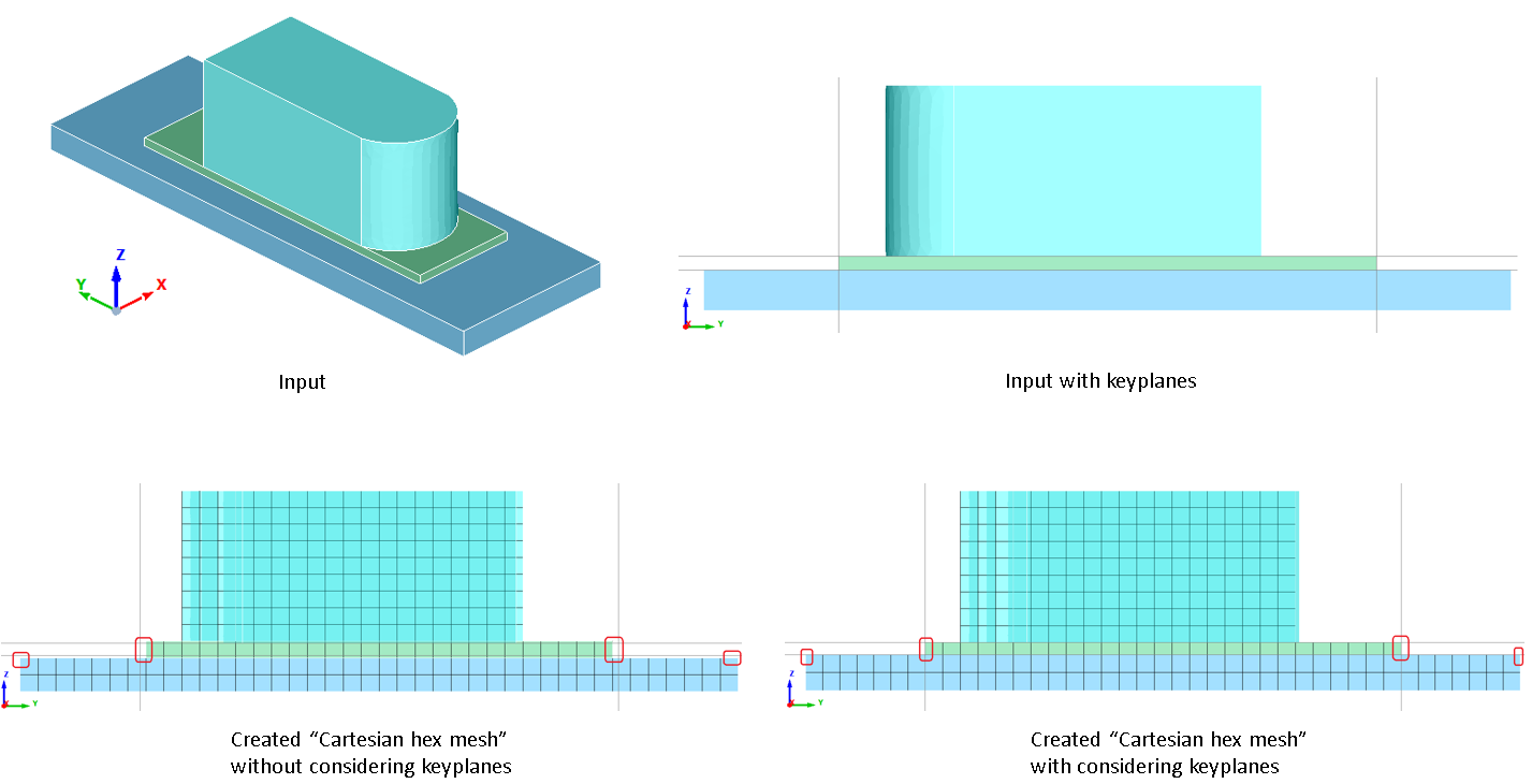 Key planes are used to capture the planar geometry better by means of creating hard planes on planar faces aligned parallel with any one of the global axis. It is created using Mesh | Controls | Mesh Planes.