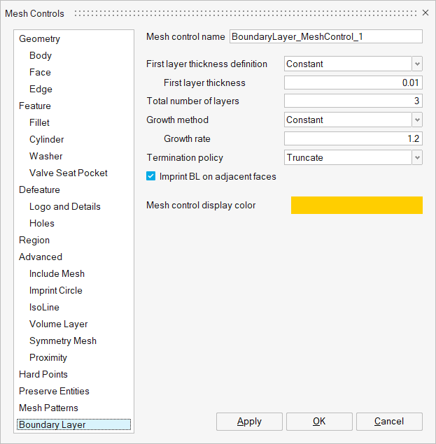 Boundary layer mesh control is used to control the number of layers on the selected local FEM faces.