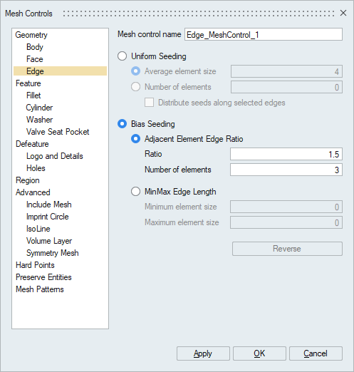 Edge Mesh Control: Using Biased Seed – Ratio and Number of elements