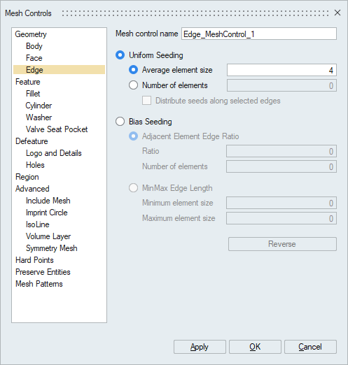 Edge Seeds are applied either by specifying the average element size or by specifying the number of elements.