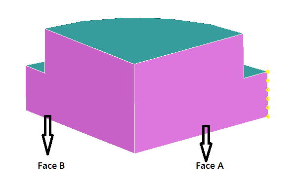 Symmetry mesh is applied to the highlighted faces, such that the mesh from Face A is to be copied to the Face B. An edge mesh control is also applied along Face A to clearly show that the mesh in both the faces are identical.