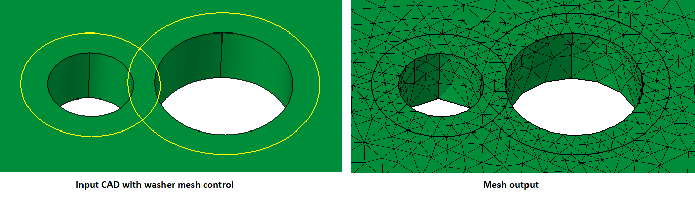 This option is used to specify average element size in the washer face. It creates a free mesh with the desired element size. Also, when washer outer edges intersect, higher preference is given to circular edges with least radius.