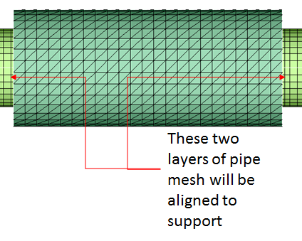 The QUAD mesh in pipe may not aligned with those in the support body. The mesh on the pipe is adjusted to align with the mesh of support.