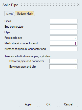 In order to accurately interpret the results at the junction of pipe and connector, mesh of pipe needs to be refined at the end. A specific number of QUAD layers can be created at connector ends by specifying the number of layers and mesh size at connector ends.