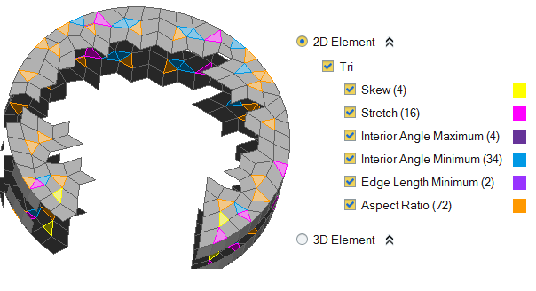 Case 2: If Mesh quality contains both shell and solid element, the legend display will be differentiated by using 2D Element or 3D Element option.