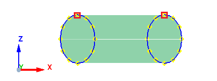 When the axis is parallel to the Z - axis, the start point of the meshing is taken from positive X. In the example below, the axis is along the Z - axis, thus the start point is taken from positive X as shown below.