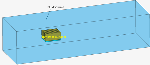 This option helps to achieve the local mesh refinement around immersed finite element (FE) surfaces within the fluid domain. This will generate a finer volume mesh around the immersed faces based on the specified mesh parameters. One of the major applications of this mesh control is the Immersed Wall feature in Flow solution which requires a finer volume mesh around the surface.