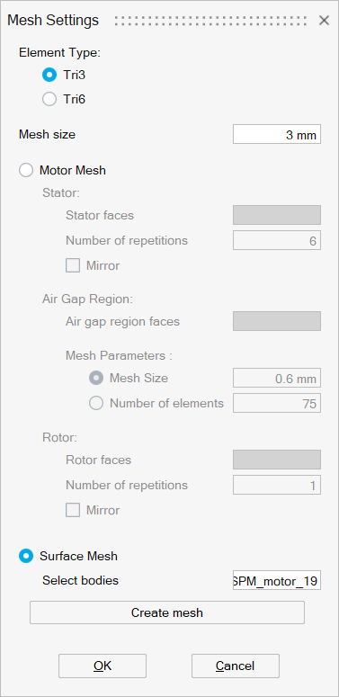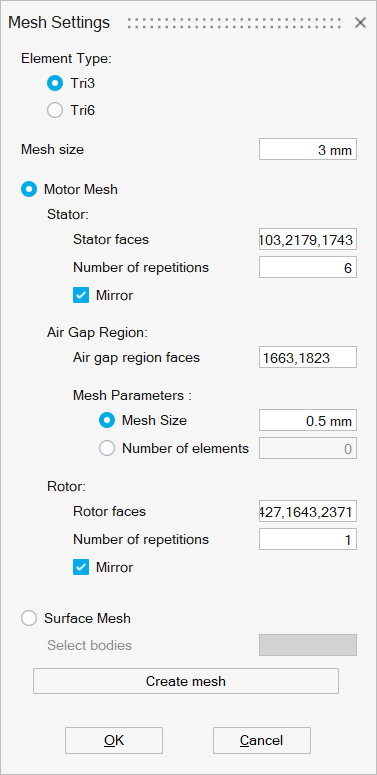 Motor mesh is used to create periodic / symmetry mesh on motors. For more details on motor mesh please refer Mesh | 2D Mesh | More Tools | Motor Mesh