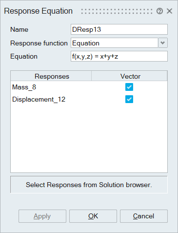 This tool is used to define Responses and Response Constraints to setup optimization problem. This tool also has an option to define Response Equation which is a combination of responses.