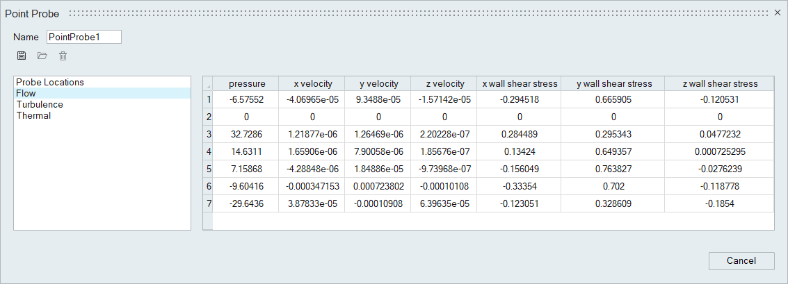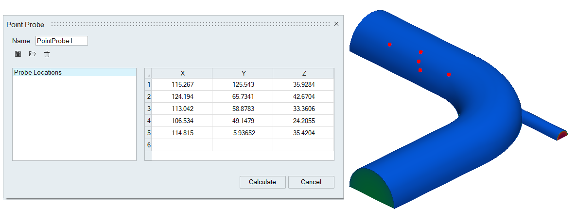 From the post ribbon, click the Point Probe tool, the Point probe dialog opens,