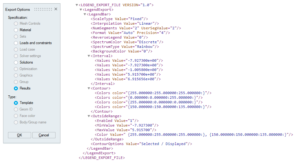 Note: Export and import of legend settings can only be done when results are active.