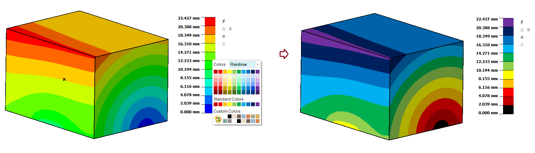 Click on the legend to customize the result values. The edited values is preserved until "Restore Legend" operation is perform.