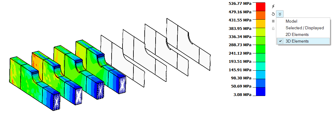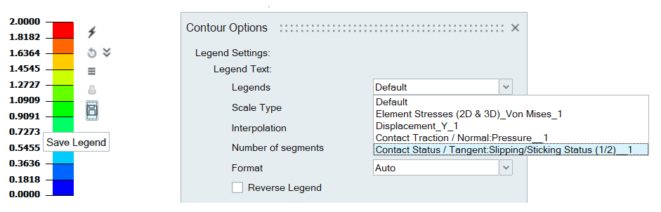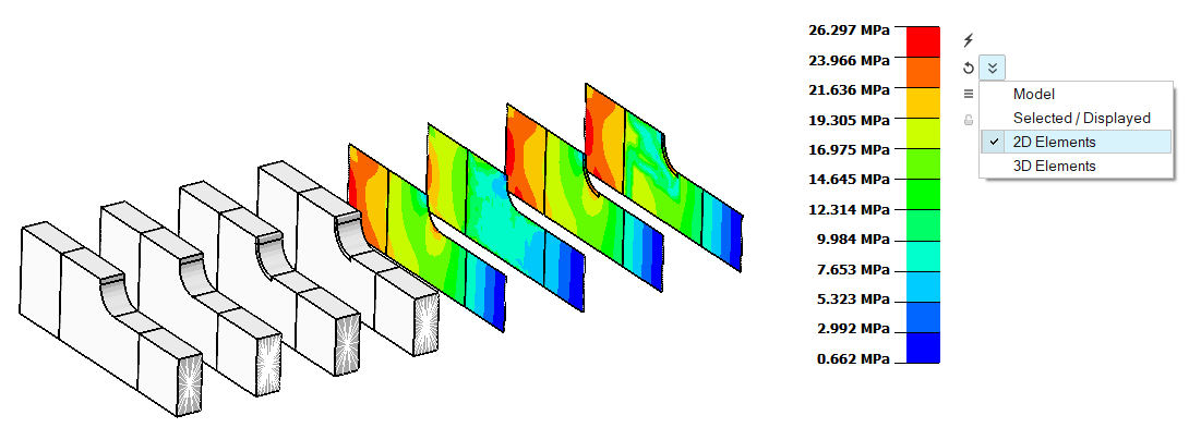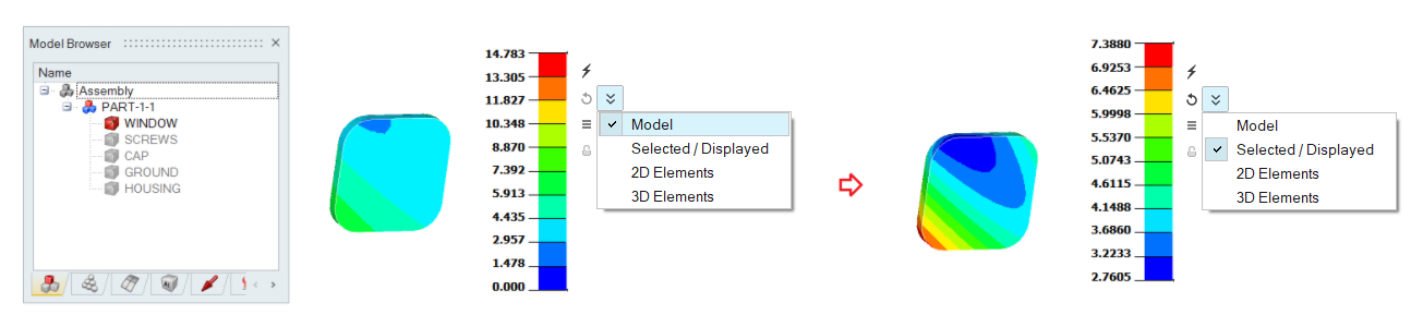 This button is used to update the contour and legend based on the Entire Model or Visible entities. It is also supported to update the contour based on 2D or 3D elements.