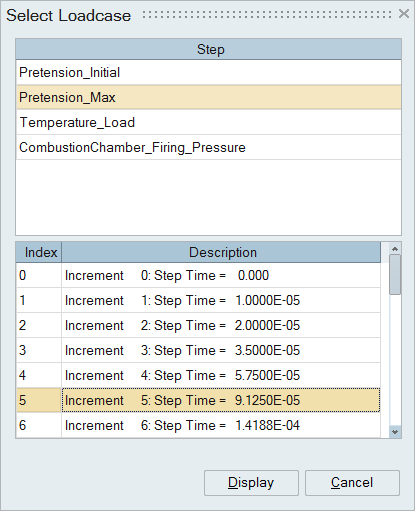Select the desired load cases to be viewed and click the Display button to view the results.