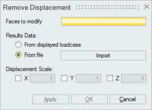 This tool is used to remove the displacement (obtained from the result) from the nodal coordinates of the selected faces. The required inputs are,
