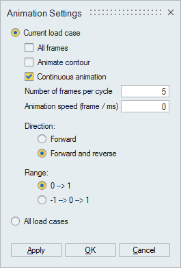 To play all frame animation, select All loadcases option by controlling the animation speed and click OK button, it will play the animation.
