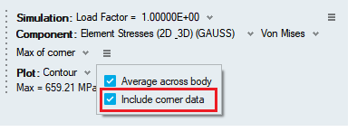 Max of corner averaging means that the maximum value from all the corners of an element is extracted and the value is shown at the centroid of the element.