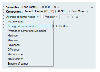 Advanced averaging, nodal values are averaged based on the surrounding elements.