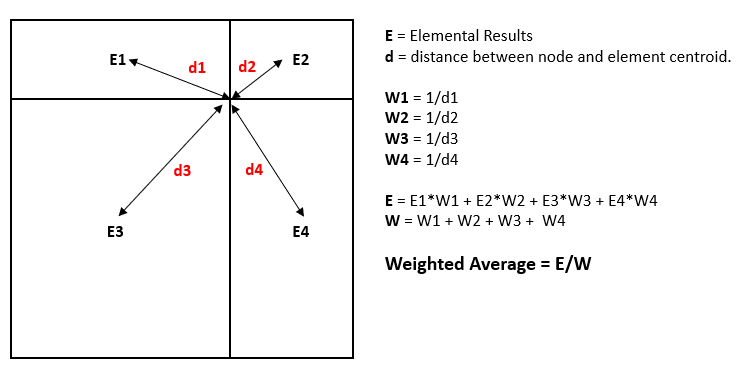 In this method, invariants are first computed for both the corner and mid-nodes. Then, values for the mid-nodes are calculated by averaging the values of corner nodes for each element, Finally, the average value for each node is calculated by considering all of its connected elements.