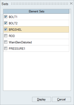 The element sets present in results model will be displayed under Element Sets in this tool. Select the required sets and click on Display.