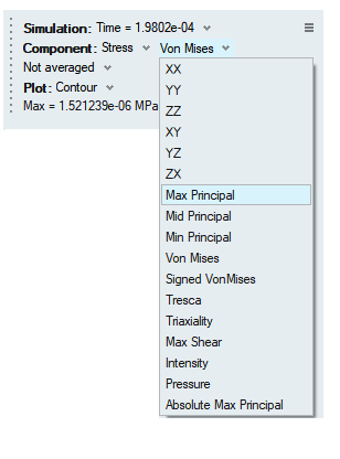 The largest of the three principal stresses or strains in absolute terms is considered as absolute Max Principal.