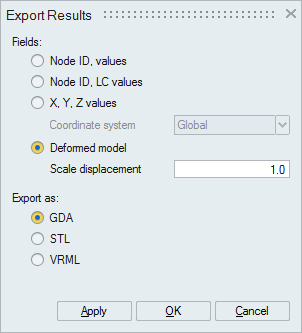 Coordinate systemIf any local coordinate is present in the model, the axis can be chosen from this menu. This is enabled only for the Node X,Y,Z, Results Value