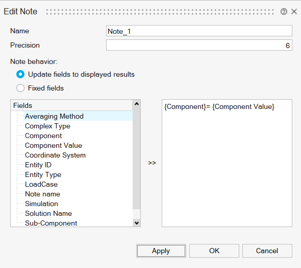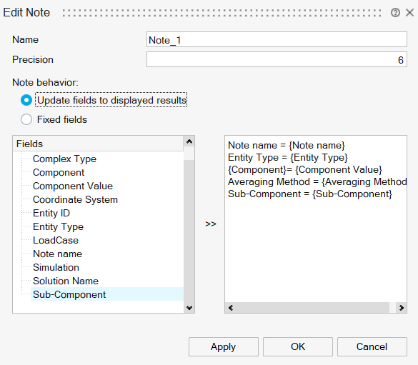 - Click "Update fields to displayed results" to update the displayed result value of notes with respect to the results panel.