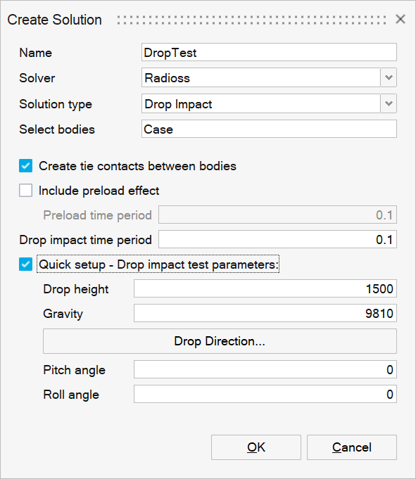 Drop test solution provides the following options to set up the model quickly.