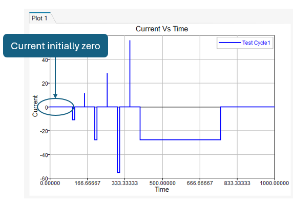 A visualization of the current vs. time, useful for reviewing the test protocol for HPPC data.