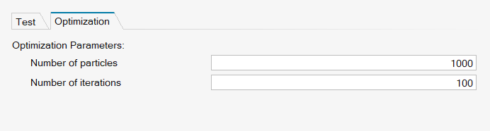 The Optimization tab allows users to configure parameters for the Particle Swarm Optimization (PSO) algorithm. This algorithm, combined with a simplex method, is used to fit the Equivalent Circuit Model parameters within each State of Charge band/ individual test cycle. Two parameters are available to adjust, although they typically do not need to be changed: