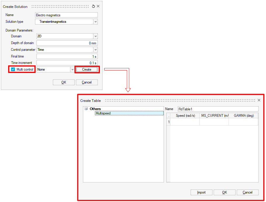 Specifically for the case of e-motors (only in 2D at this time), users can define multi-control to simultaneously calculate multiple working points defined by current, control angle and speed.