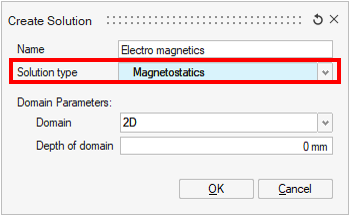 - In case of 2D the domain depth must be defined to take into account the electromagnetic effects in the third dimension.