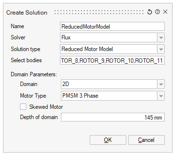 You can modify the Name of the new solution to be created. You can assign bodies to this solution in the Select bodies part. And you will need to define the Depth of domain. The other fields are currently fixed.