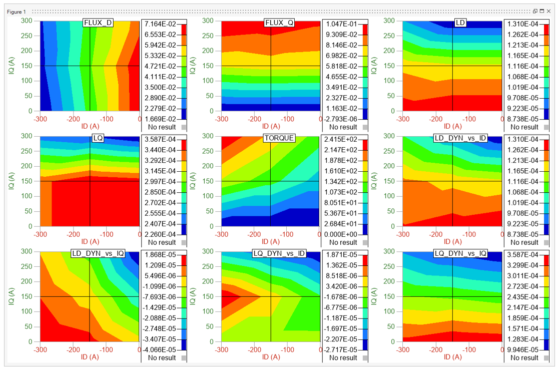 These results can be used to model the motor in a system schematic (like with Activate or PSIM for instance). The transient magnetic project is converted to Magneto-Static which phase currents are driven with Id and Iq allowing to extract easily all the needed tables.