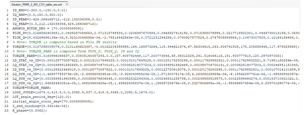 This application computes look-up tables of Fluxdq, Ld, Lq (static and dynamic), iron losses, Joule losses and torque versus Id, Iq and rotor position (if needed).
