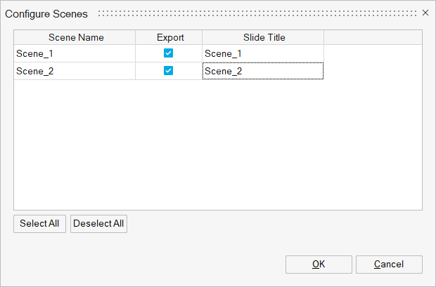Configure: This option is used to select the scenes to be included in the report and also used to provide the title for each of the scenes.